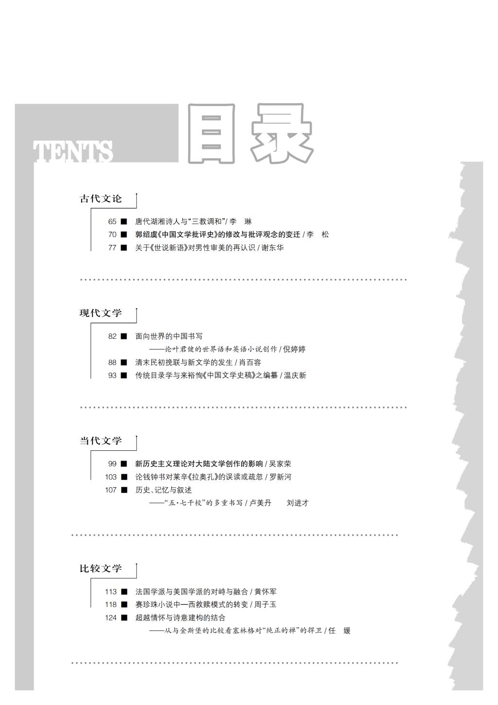 《中国文学研究》2017-3目录