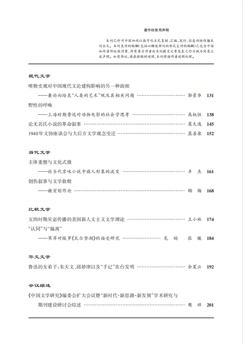《中国文学研究》2020年第4期总第139期