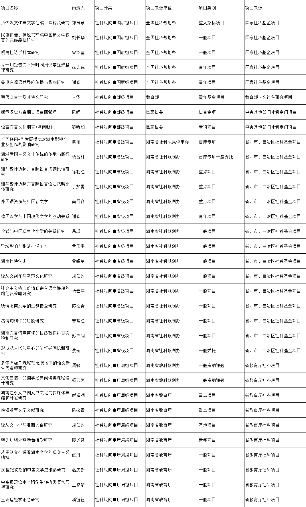 2017年科研项目立项信息一览表