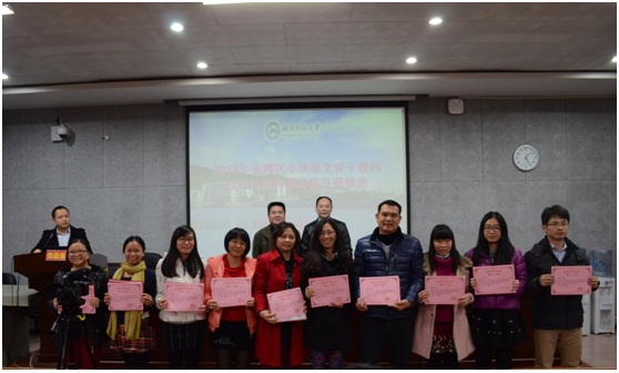 2015年11月13日下午,来自广东省珠海市金湾区各小学的50名小学语文老师,完成培训任务在大象影视大全在线观看217学术报告厅举行结业典礼。本次研修班班长、金湾区三灶学区教研员白春生老师、湖南师范大学大象影视大全在线观看党委书记李伶俐出席结业典礼。典礼由大象影视大全在线观看成教办主任张德强主持。