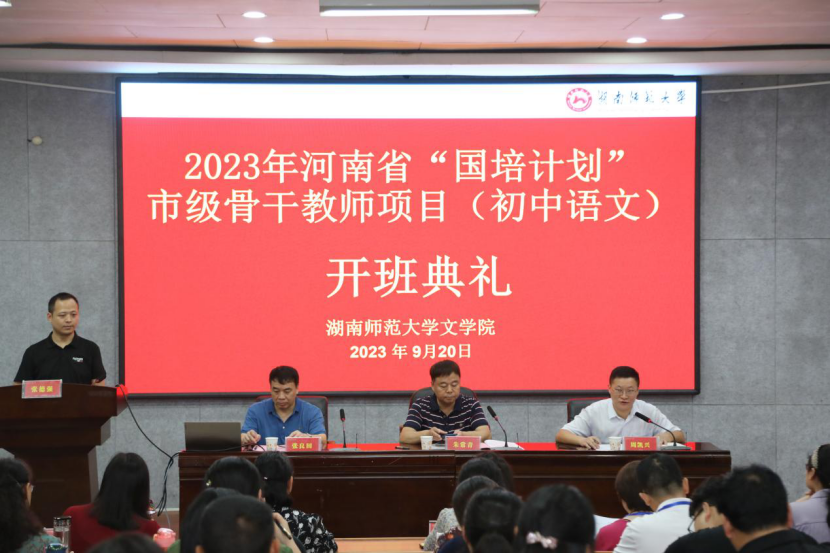 (通讯员:汤宇星)近日,2023年河南省“国培计划”市级初中语文骨干教师培训班在我院举行。湖南师范大学中学校长和教师培训部(校国培办)副主任朱常青、湖南师范大学大象影视大全在线观看副院长周凯兴、项目首席专家张良田教授、培训中心主任张德强,以及来自河南省各市州的50名学员参加了开班仪式。