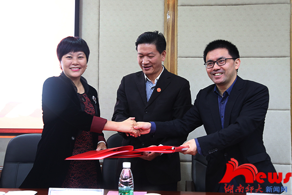 汤素兰与学院院长郑贤章、校友总会副秘书长彭正乔签订了捐赠协议。