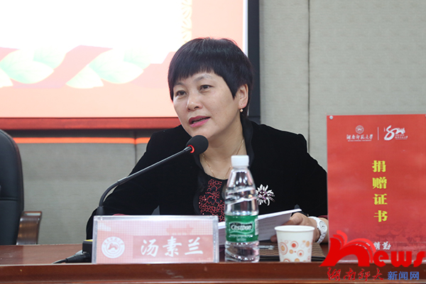 学院党委书记李伶俐,副院长肖百容、岳凯华,校宣传部副部长蔡颂、汤素兰教授的先生戴毅明和100多名师生代表参加了捐赠仪式。