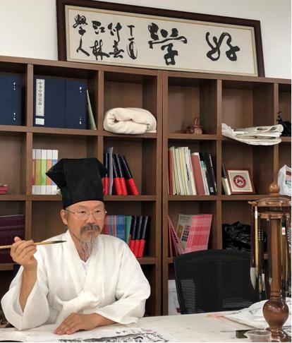 62岁的金在龙是孔院年长的学生之一。名字取自《周易》“见龙在田,利见大人”的他,常年身穿韩国传统服装,自称是“孔子的学生”,熟读四书五经,以传播儒家思想为己任,喜欢吟唱中国古典诗文和书法。因为热爱中国文化,金在龙多次去中国交流学习,但碍于语言影响交流沟通,所以进入孔院发奋学习汉语。