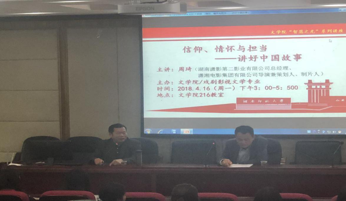 (通讯员 郑健东)4月16日下午3点,湖南潇湘第二影业有限公司总经理、潇湘电影集团有限公司导演兼制片人周琦,做客大象影视大全在线观看“智慧之光”讲坛,为我院师生带来了题为“信仰、情怀与担当——讲好中国故事”的学术讲座。讲座由大象影视大全在线观看副院长岳凯华教授主持。