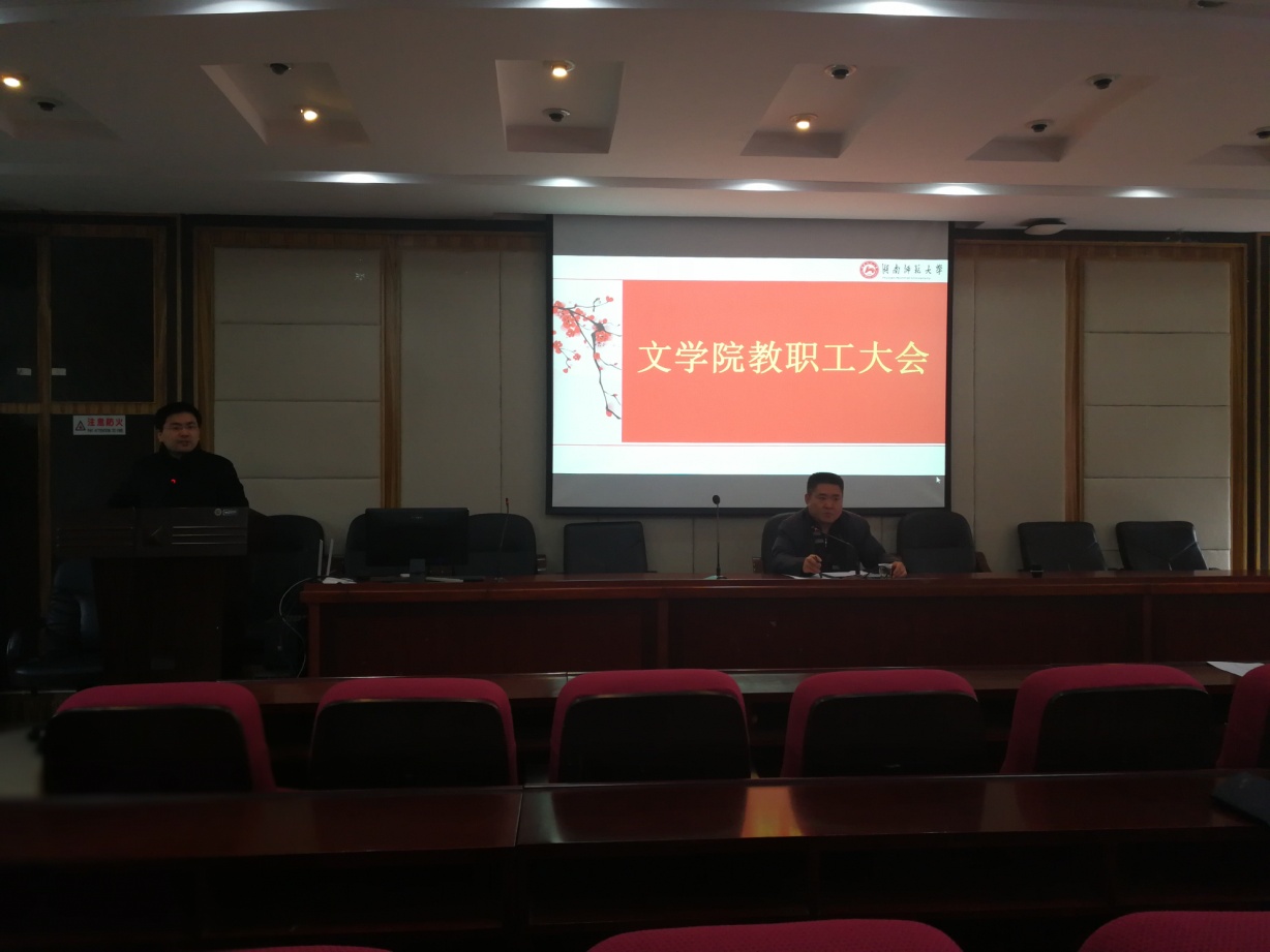 2018年元月18日下午,学院在216报告厅召开了全体教职工大会,大会由院党委书记李伶俐主持。