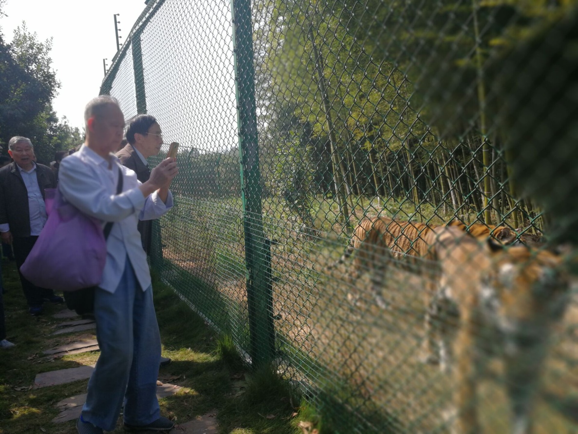 10月27日,大象影视大全在线观看组织学院离退休老师到长沙县金井镇老虎园、茶香小镇一日游。图为大象影视大全在线观看离退休老师在老虎园参观: