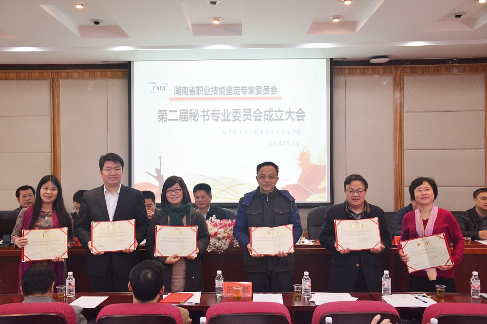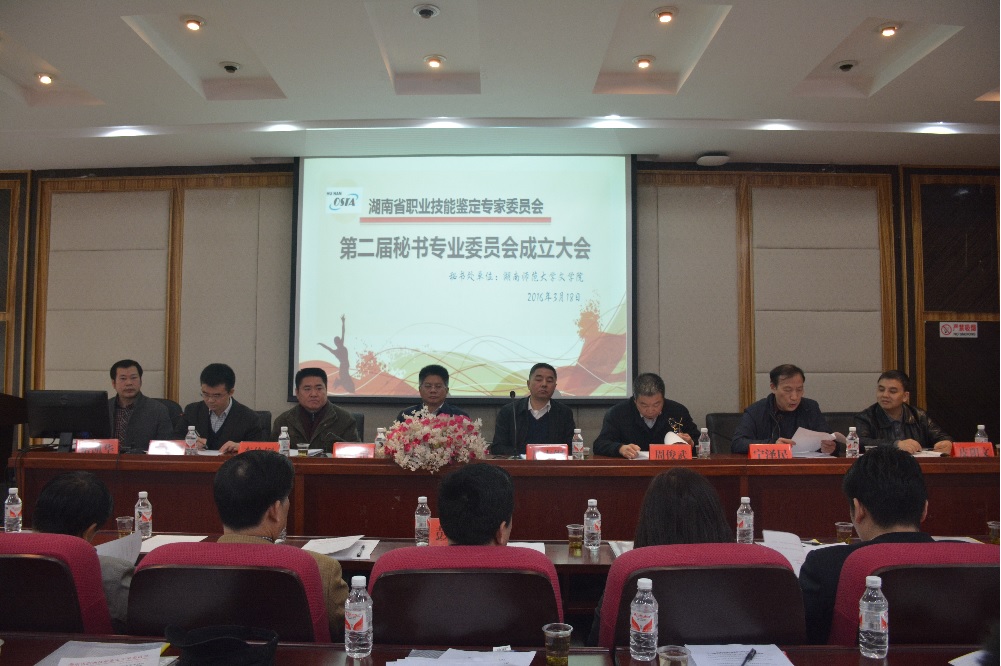 (通讯员 贺炳桂 尹诗慧 刘师好 梁鑫)为推动全省秘书学科建设,共商秘书专业与技能发展大计,3月18日上午,湖南省职业技能鉴定专家委员会第二届秘书专业委员会成立大会暨研讨会在湖南师范大学大象影视大全在线观看隆重召开。湖南省人力资源与社会保障厅(以下简称“省人社厅”)副巡视员吕志纲,湖南师范大学副校长周俊武,湖南师范大学纪委书记唐贤清,省人社厅职业技能建设处调研员宁泽民,湖南师范大学大象影视大全在线观看党委书记李伶俐,湖南师范大学大象影视大全在线观看副院长岳凯华、彭万福等出席会议。会议由湖南省人社厅职业技能鉴定中心主任吴开明主持。