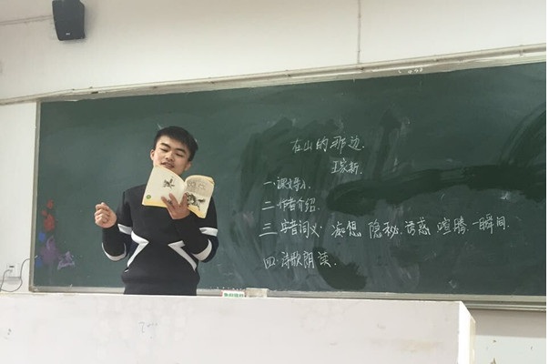 16日上午,第三次试讲评选活动在科技楼二楼进行。高一组9位成员试讲完后,初一组彭情一郎和阿依努尔就《在山的那边》一文进行比赛,其余成员则投票并进行点评。副队长王胜艳表示,二人在多次试讲后有了很大进步,彭情一郎教态自然,声音宏亮,富有激情,阿依努尔则内容充实,条理清晰,朗读很有感情,两人各有优势。成员徐万表示,几名同学就同一篇课文一起试讲,能够相互借鉴,取长补短,更能碰撞出思维的火花。