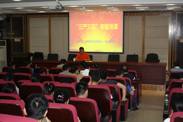 黎大志围绕“学习践行’三严三实’,全面促进学校发展”的主题展开,从“三严三实”的要义、不严不实的表现以及如何践行“三严三实”三个方面进行了点面结合的阐述。