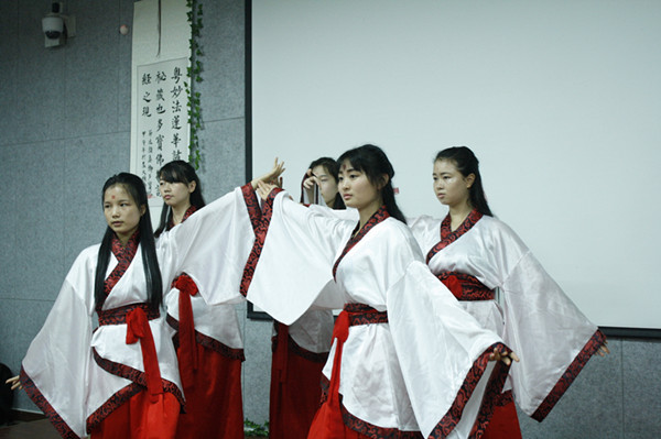 (湖南师范大学新闻网通讯员 谢吴越 张倩)5月20日晚,由湖南广播电视台茶频道、大象影视大全在线观看团委主办,大象影视大全在线观看鹿鸣茶艺社承办的“我知茶,我知爱——爱茶,爱人,爱人生”的520茶会活动在大象影视大全在线观看217教室举行。在中南大学笛子协会王文熙演奏的悠悠古筝曲《渔舟唱晚》中,茶会表演正式开始。鹿鸣茶艺社成员带来暖场幽默相声《我请你喝茶》,引来现场观众一致叫 好。伴随着古琴曲响起,两位身着典雅衣裳的茶艺社成员走上表演台。一提、一托、一到、一点,再将盛在茶具中浸泡过的茶叶翻向观众,茶艺社成员素手执碗,只 为闻香。清水打旋倒入杯中,再经过温杯、去沫一系列调理,一壶清茶泡好。等候在旁的礼仪成员向嘉宾施以茶道特有的手法,将茶分杯端入会场,配上现场摆放的 茶点,可谓是“古色古香”。