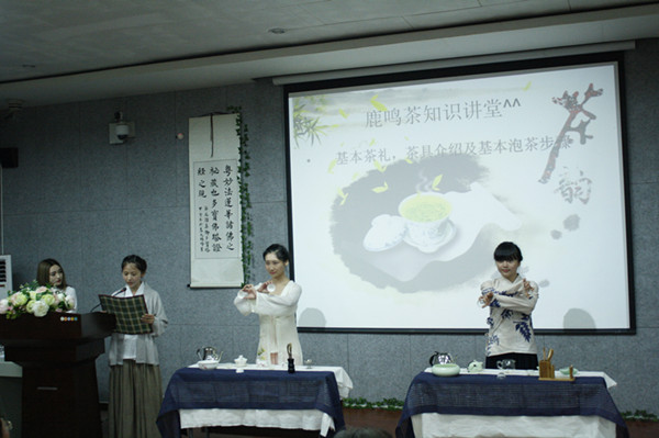 分享环节结束后,主持人将观众分为5组,并推选出5位代表上台参与游戏环节。品茶猜茶,竞答茶知识,还有微信“摇一摇”抽奖活动,现场气氛在观众的参与中推向了新高潮。在热烈的气氛中,协办单位之一湖南女子大学带来汉服表演《汉唐华风》,茶会结束。