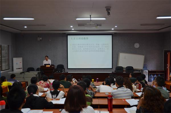 (通讯员王乐)9月18号下午,大象影视大全在线观看教授蔡梦麒选取大量初中文言文语段,纠正了初中文言文词语注释中众多存疑之处,在大象影视大全在线观看217教室与学员们共同探讨文言文词语教学方法。