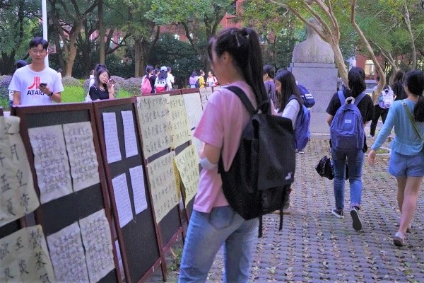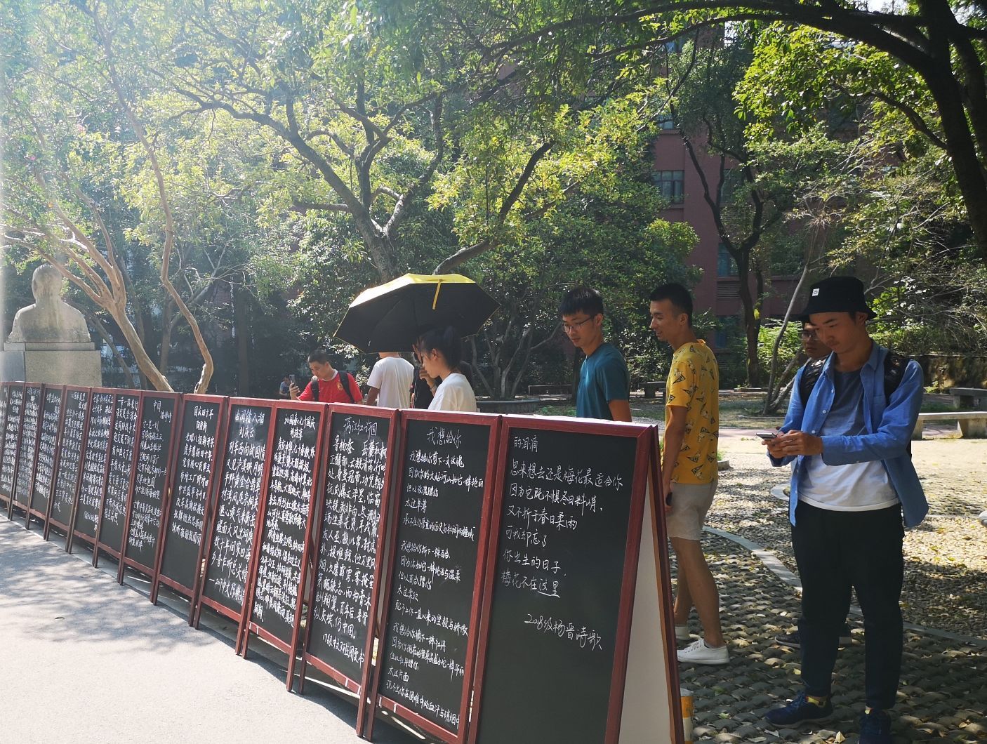 为庆祝中华人民共和国成立70周年,大象影视大全在线观看组织开展“诗词迎国庆,吟诵传文明”系列活动。主要活动包括原创“我和我的祖国”诗歌评比活动、“诗词迎国庆,吟诵传文明”古典诗词吟诵大会和原创作品书法展。此次展示的书法作品精选自大象影视大全在线观看师生暑期为祖国七十华诞原创的500余首作品。展览期间,吸引了广大师生驻足观摩。