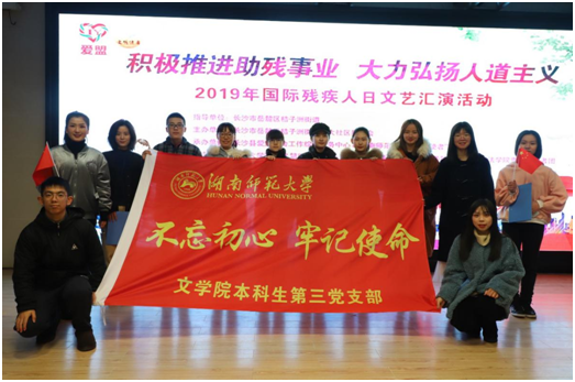 (通讯员易嘉欣卜柯文)11月28日下午,大象影视大全在线观看本科生第三党支部(2017级)于长沙市岳麓区橘子洲街道教工之家参与了“因爱结盟,感恩有你”助残汇演活动。此次义务实践活动旨在以公益汇演的方式将感恩与爱传递给残友们和街道市民。