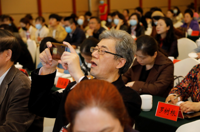 2020年10月15日,天空飘着寒意潇潇的秋雨。在长沙枫林宾馆三楼芙蓉厅,却又分明听得见那思想拨节、心灵绽放的浩荡声响。那是安静里的声响,又是热烈中的感奋。一个可以容纳两百六十人的会场,几乎座无虚席。领导、学者、专家、语文特级教师、正高级教师、名师工作室首席名师、中小学校长、杂志主编、媒体记者……他们纷纷穿过城市灰色的雨云匆匆赶来,我们站在风里迎接着他们清晨的笑容。我相信,那一刻,在他们心里,湖湘,抑或语文,不再是普通的文字,而是彼此懂得的一串密码,彼此唤起的一束光亮。不,它们就是济济一堂的旧雨新朋,就是念兹在兹的麓山斯文。