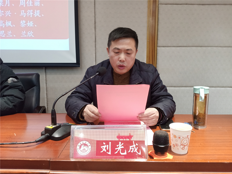 最后,熊剑峰老师宣布此次教育实习工作“优秀教育实习队”、“优秀教育实践指导老师”获奖名单,刘光成老师宣布“优秀教育研习报告”、“优秀教育实习生”获奖名单,并对以上获奖的老师、学生表示祝贺。至此,我院2017级中文师范专业召开实习总结大会结束。