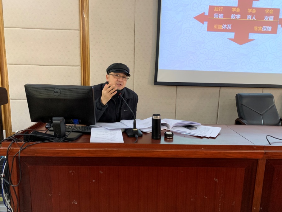 陈敏哲教授主要从师范类专业认证的理念和原则、师范类专业认证的主线与标准构架、“课程与教学”认证标准、课程教学大纲的设计与落实、课程目标达成度评价与改进等五个方面做了详细指导,并针对老师们的提问,做出了详细的解答。