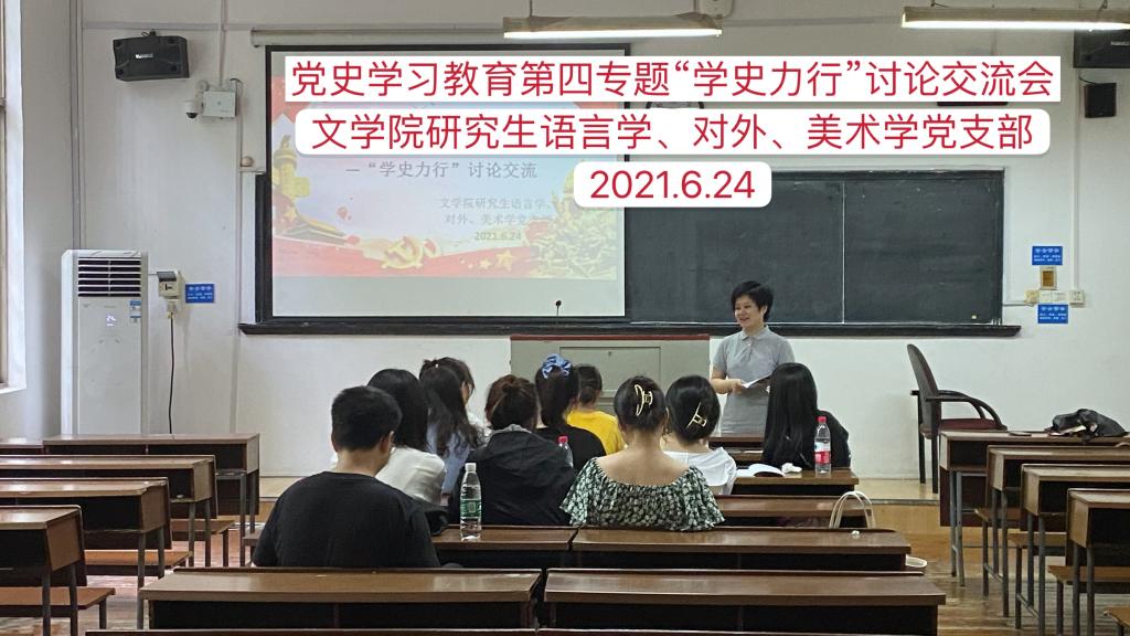 2021年6月24日下午,学院以支部为单位开展党史学习教育第四专题——“学史力行”学习讨论,重点学习了《在“学史力行”中彰显担当作为》,结合工作实际,全体党员均表示要知行合一,将学习教育的成果落实到行动上,尽职尽责,敢于担当和作为。