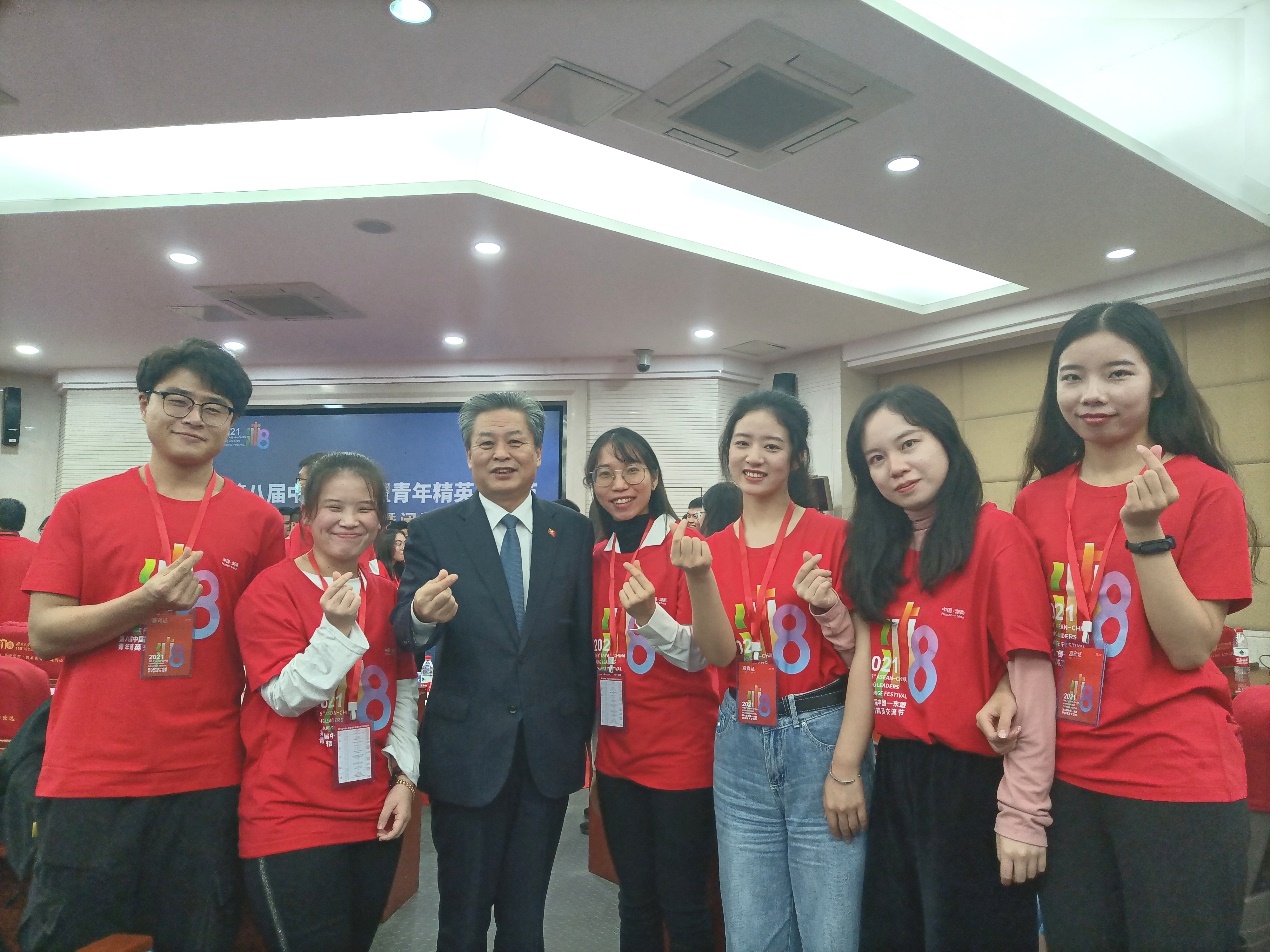 中国-东盟中心秘书长陈德海和湖南师范大学学生代表队合影