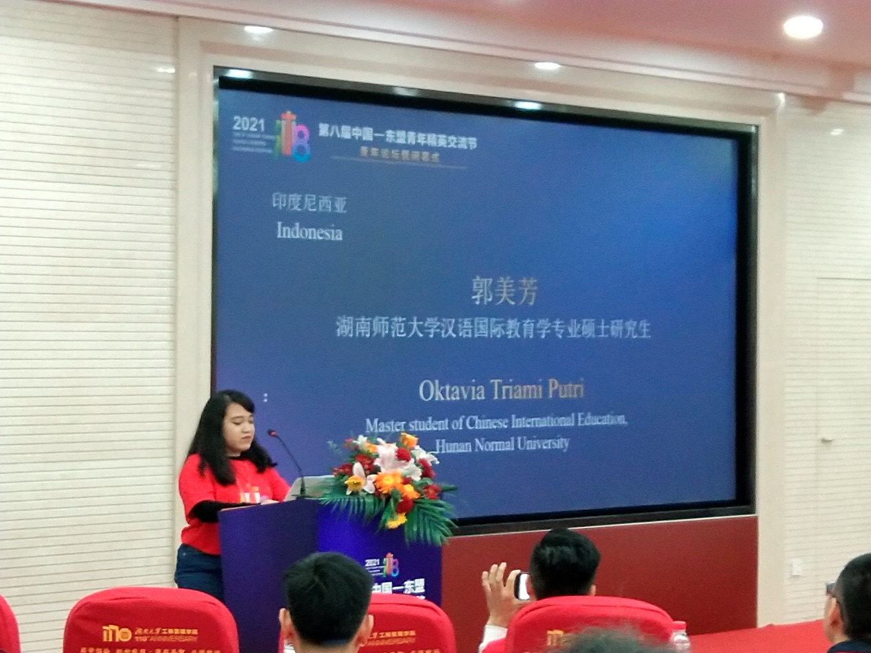 湖南师范大学参加的学生代表有3名东盟国家在华优秀留学生。他们分别是来自大象影视大全在线观看语言学及应用语言学专业的越南留学研究生阮氏夜草,来自国际汉语文化学院汉语国际教育专业的印度尼西亚留学研究生郭美芳,国际汉语文化学院汉语言专业的印度尼西亚留学本科生黄冰冰。4名中国优秀学生,他们分别是来自外国语学院的英语笔译专业研究生吴琼和蒋淇玮,英语专业本科生张皓楠和黄为吉。郭美芳在闭幕式的青年论坛上发言。