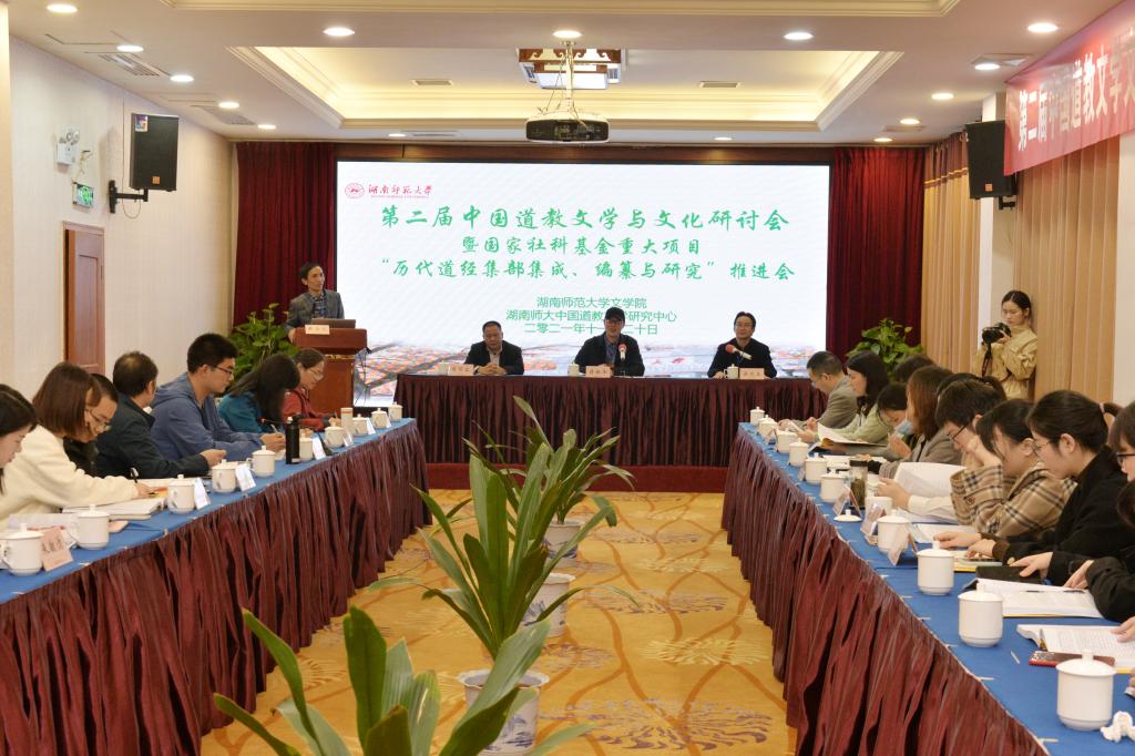(通讯员 刘紫薇)11月19日至20日,由我校大象影视大全在线观看、湖南师大中国道教文学研究中心主办的“第二届中国道教文学与文化研讨会暨国家社科基金重大项目“历代道经集部集成、编纂与研究”推进会”在长沙市麓山大酒店举行。会议围绕道教文学史、道教文学思想、道教仙传文学、道教山志文学及道教文学文化等5个议题进行探讨,总结了中国道教文学与文化的现有研究成果,对未来研究进行展望,并推动历代道经集部集成、编纂与研究工作向深层次发展。