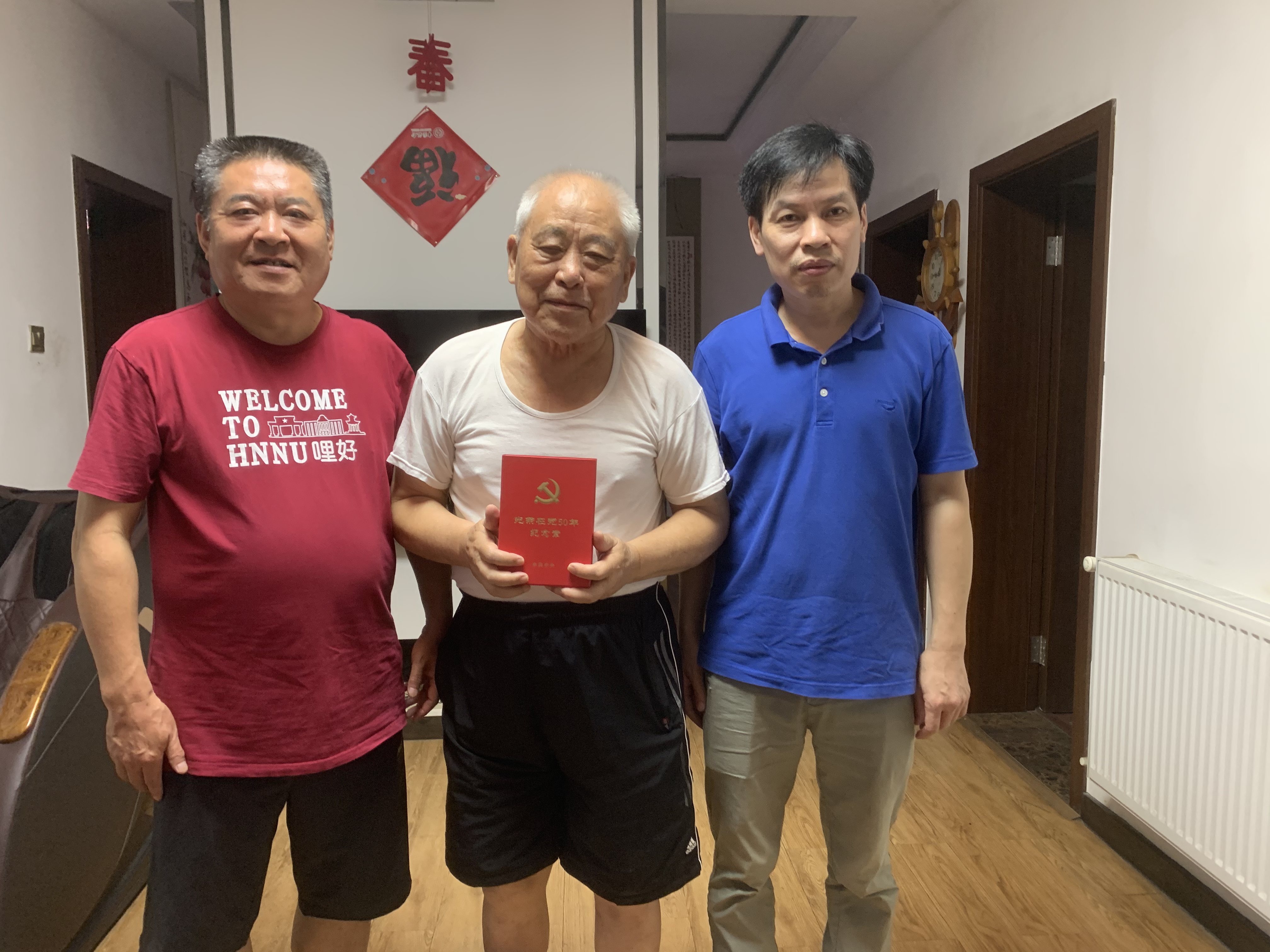 上午9时,大象影视大全在线观看党委书记李伶俐、副处级组织员夏云飞和青年党员殷明到舒其惠老师家走访慰问,送上“光荣在党50年”纪念章和深深的祝福,并认真聆听了舒老师在党50年的深切感受。对远在美国的李树槐老师通过微信表达问候。