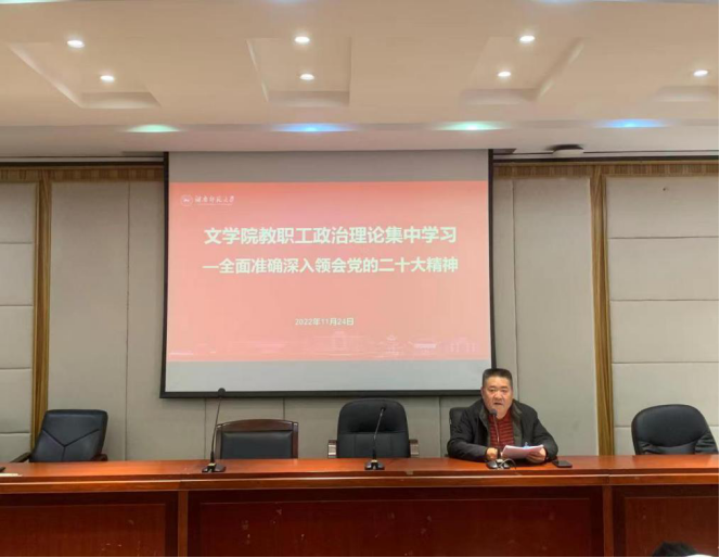 2022年11月24日下午,大象影视大全在线观看在216报告厅召开全院教职工大会,开展政治理论集中学习,全面准确深入领会党的二十大精神,会议由院党委书记李伶俐主持。