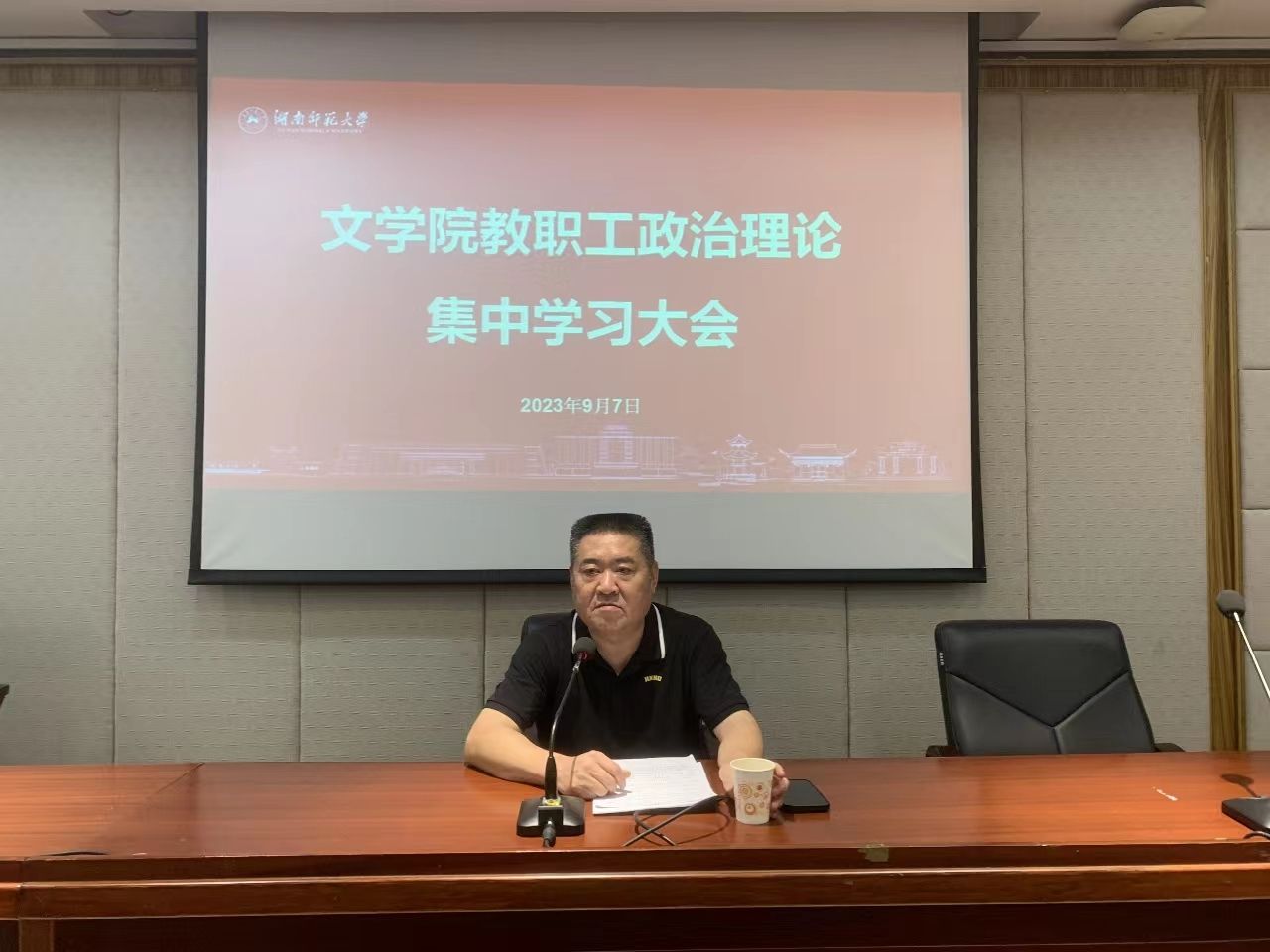 2023年9月7日下午,学院在216报告厅召开教职工集中政治学习大会,深入学习湖南省委十二届四次全会精神,会议由院党委书记李伶俐主持。