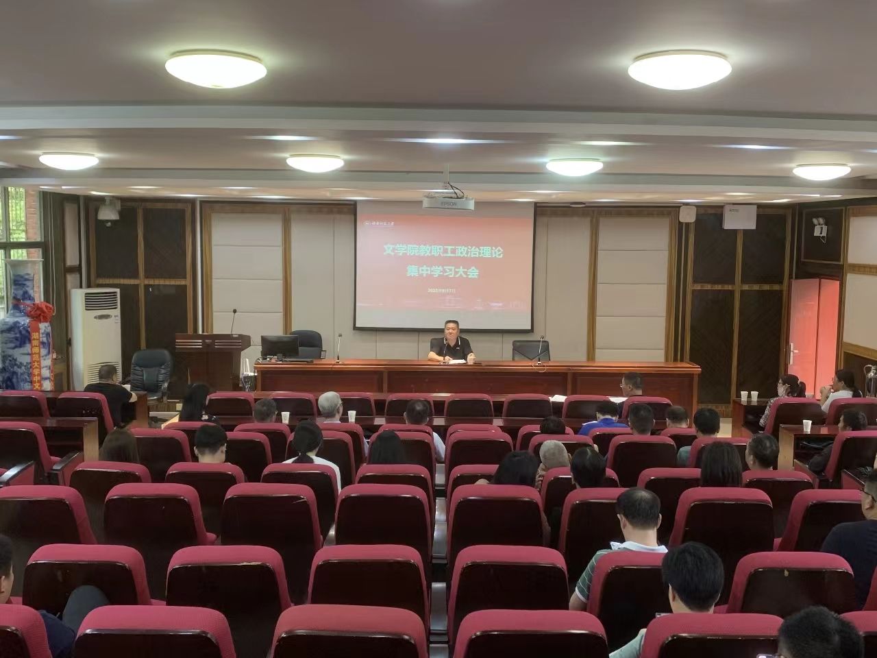 李伶俐结合自身学习体会,作了题为《准确把握“三高四新”的内涵,立足本职建新功》的辅导报告,希望全院教职工牢记“国之大者”,为党育人、为国育才,强化师德师风建设,苦练教书育人本领,用心用情用力投入人才培养,立德树人见行见效,为湖南教育事业高质量发展和教育强国建设作出新的更大的贡献!最后,在39个教师节即将到来之际,李书记代表学院党委和行政向全院教职工致以节日的祝福和问候。