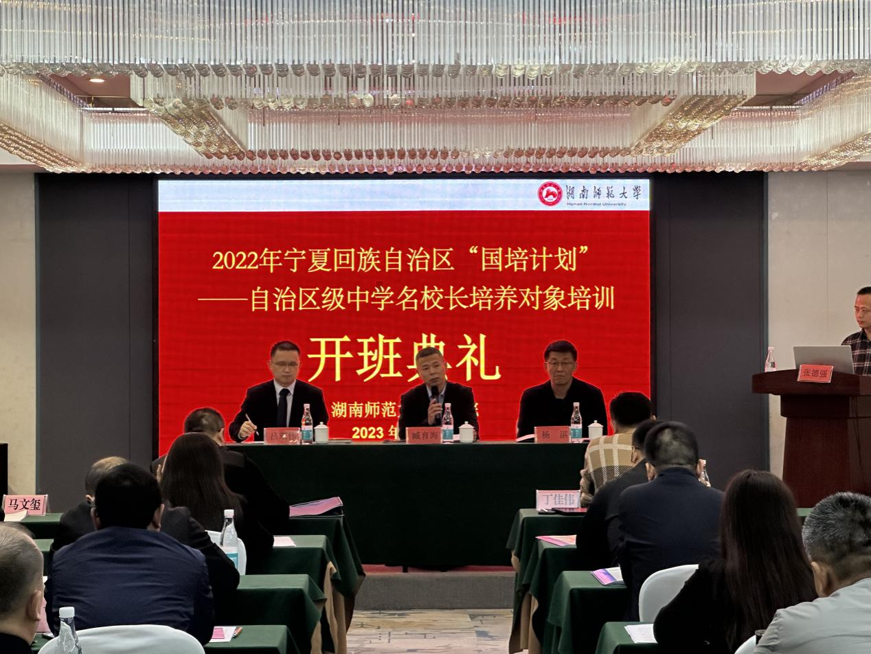 层林浸染秋意浓,色彩斑斓映碧空。2023年10月8日,由宁夏回族自治区教育厅主办、湖南师范大学承办的2022年“国培计划”中西部骨干项目——自治区级中学名校长培养对象培训班在银川举办。自治区教育厅教师处处长臧育海、教师培训管理办公室主任杨湛、湖南师范大学大象影视大全在线观看副院长吕双伟出席开班仪式,来自宁夏回族自治区各地市的32名名校长工作室的主持人及成员参加培训。