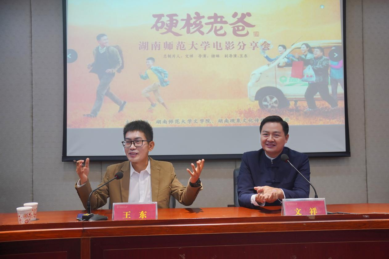 (通讯员刘库)11月10日下午,由湖南师范大学大象影视大全在线观看、湖南砚泉文化传媒有限公司主办的电影《硬核老爸》观影分享会暨文祥“电影追梦人”主题演讲在大象影视大全在线观看216教室开展。湖南砚泉文化传媒有限公司董事长文祥,湖南省电影评论协会秘书长王东,湖南师范大学大象影视大全在线观看党委副书记刘宓蜜,湖南师范大学大象影视大全在线观看戏剧影视文学系专任教师刘库,湖南师范大学大象影视大全在线观看本科生与研究生等参加活动。活动由省广播电视台导演、省电影评论协会秘书长王东主持。