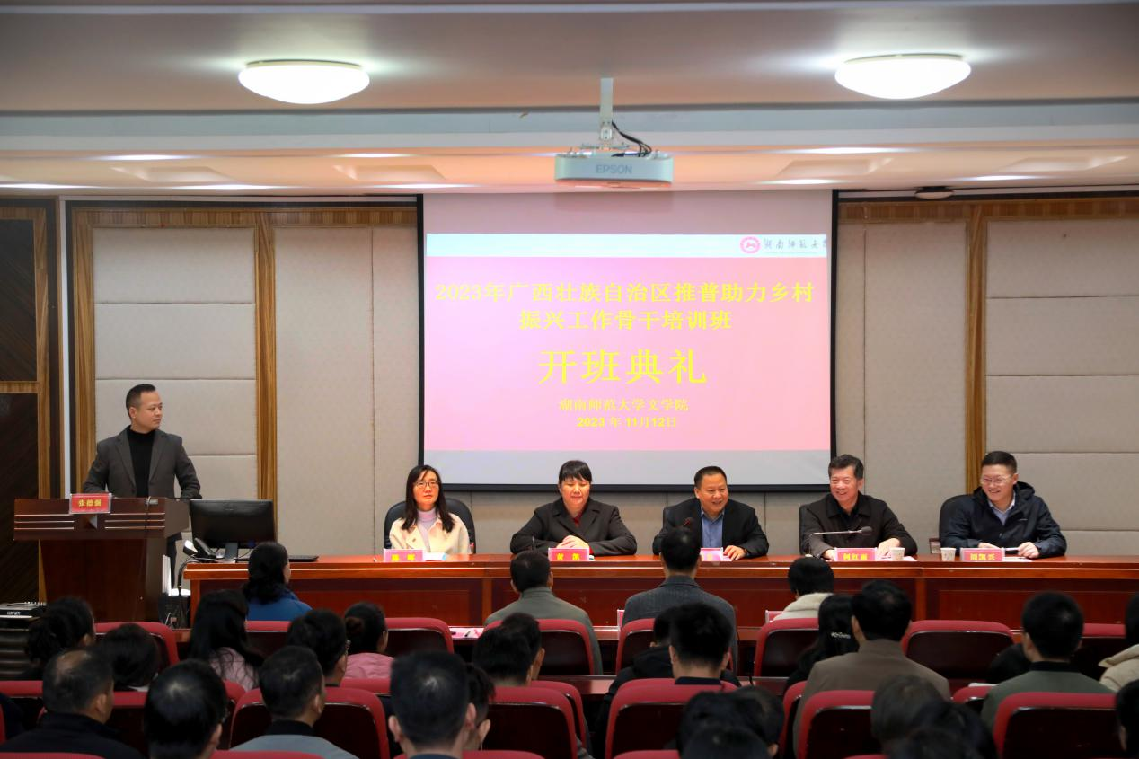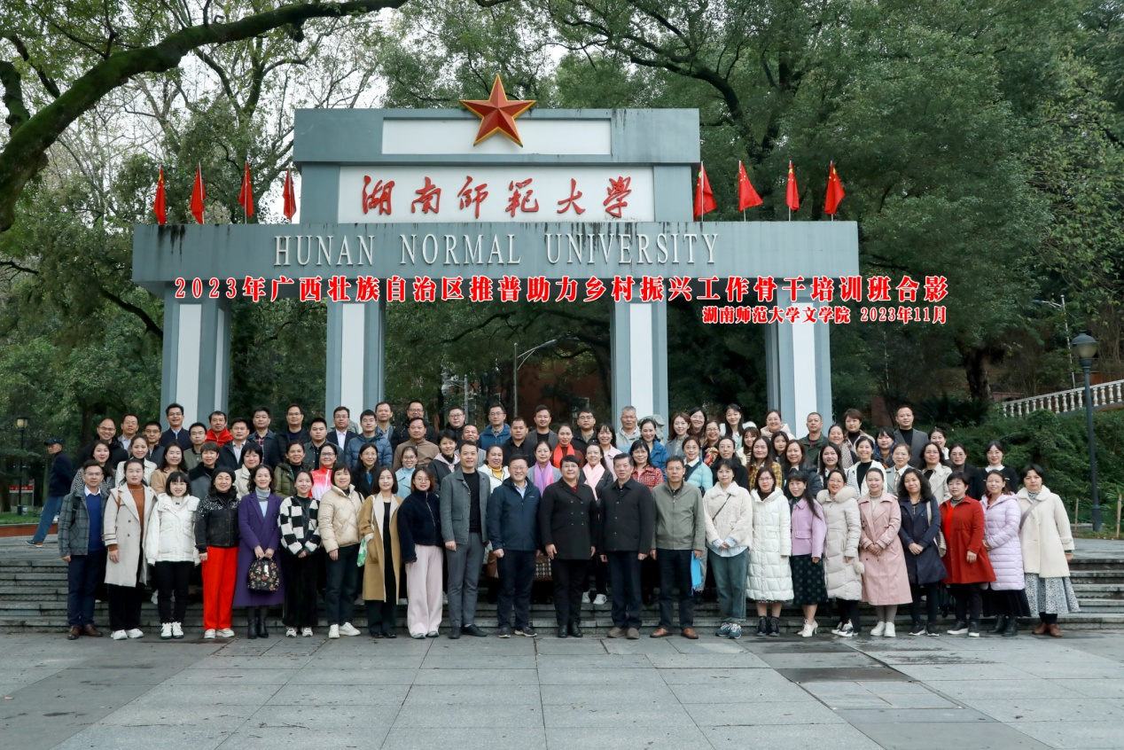 (通讯员:李妍佳 王婧之)11月12日,2023年广西壮族自治区推普助力乡村振兴工作骨干培训班在我院举行。自治区教育厅语工处处长黄凯、四级调研员韦方奇,湖南师范大学大象影视大全在线观看院长肖百容、副院长周凯兴、对外汉语系主任陈晖,桂林师范高等专科学校副校长何红雨、教务处处长石群山,以及80名学员参加了开班仪式。开班仪式由院成教办主任张德强主持。