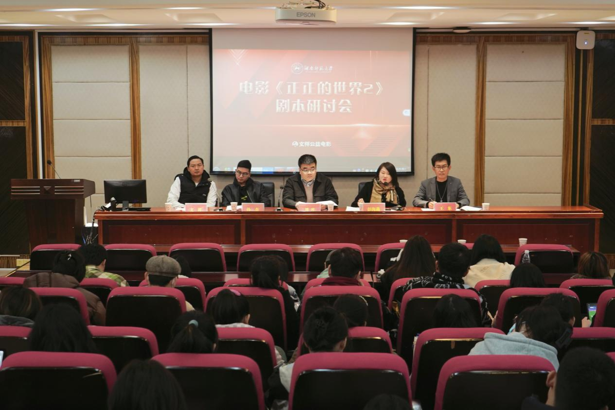 12月2日下午,由湖南师范大学大象影视大全在线观看、湖南砚泉文化传媒有限公司主办的电影《正正的世界2》剧本研讨会在大象影视大全在线观看216教室开展。湖南砚泉文化传媒有限公司董事长、《正正的世界》系列电影制片人文祥,《正正的世界》系列电影编剧彭海燕、导演孙杰、执行导演王东,湖南师范大学大象影视大全在线观看戏剧影视文学系专任教师刘库,湖南师范大学大象影视大全在线观看本科生与研究生等参加研讨会。研讨会由大象影视大全在线观看戏剧影视文学系教师刘库主持。
