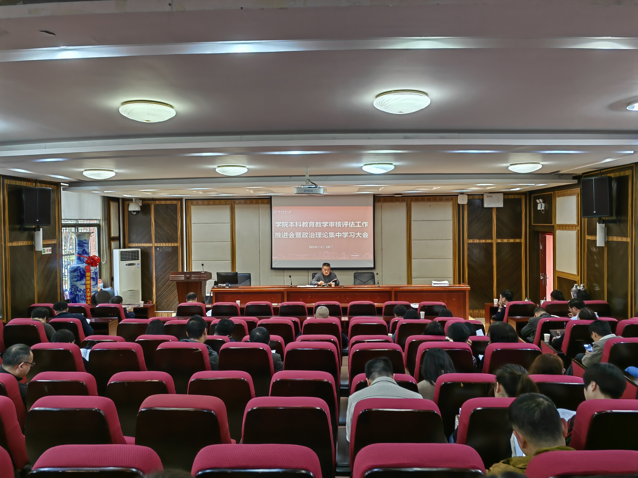2024年3月28日下午,学院在216报告厅召开本科教育教学审核评估工作推进会暨教职工政治理论集中学习大会,全院教职工参加,会议由院党委书记李伶俐主持。
