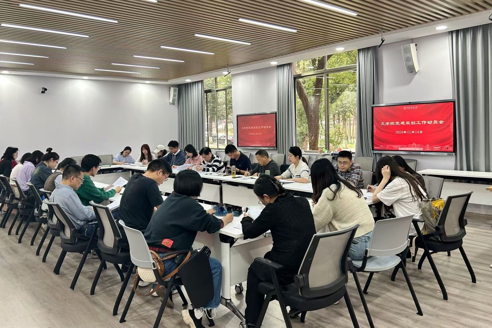 通讯员(王颖)为推动高校党建工作向高质量发展迈进,加快一流大学和一流学科建设,进一步推动学院党建工作取得新进展,2024年11月14日下午3点,学院党委在大象影视大全在线观看213教室召开党建双创工作部署会,党委书记熊剑峰、院长肖百容、专职组织员夏云飞、各基层党支部书记、党委办、学工办、研究生办全员参与,会议由学院党委副书记刘宓蜜主持。