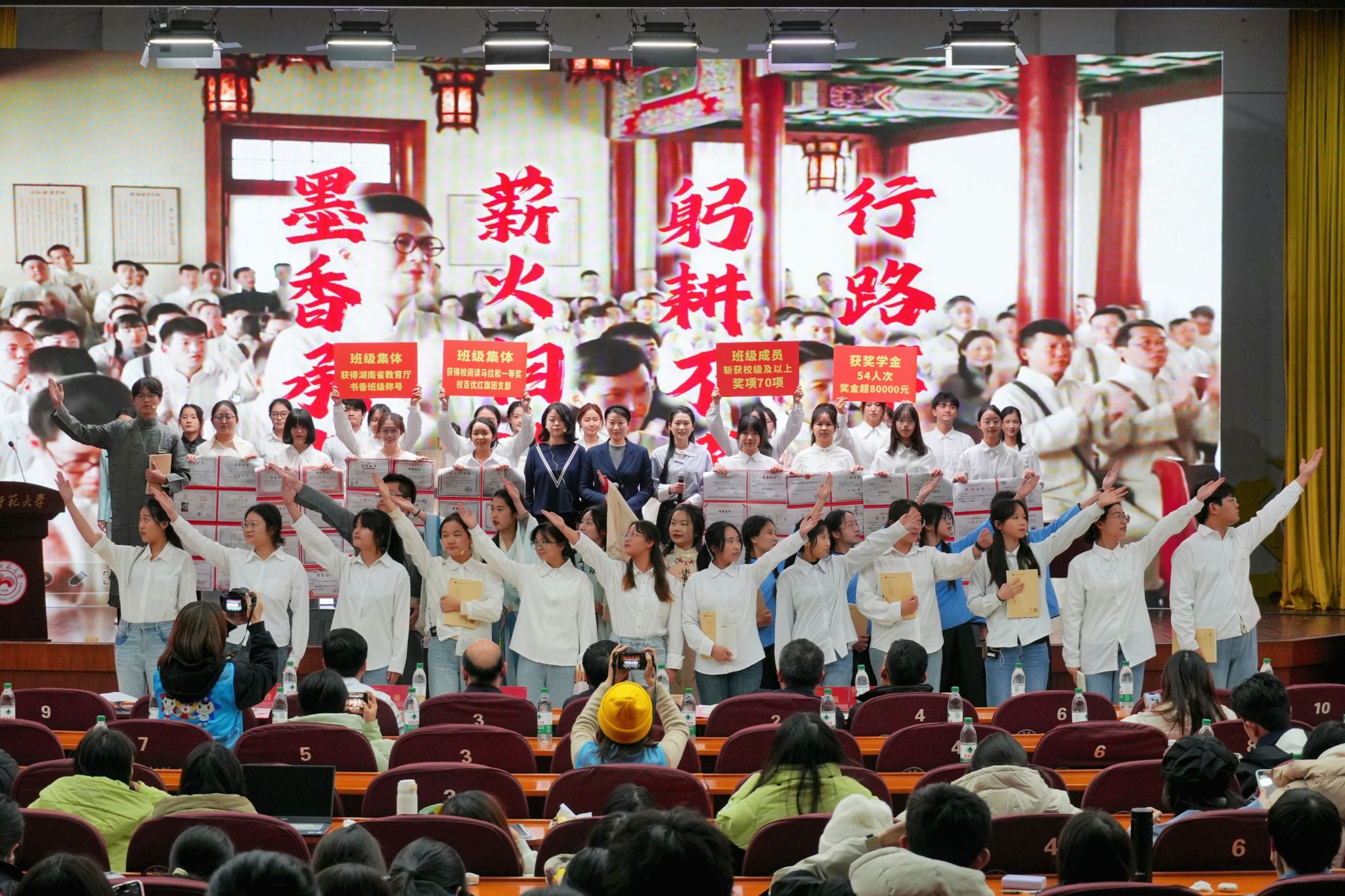 (通讯员 王雅茹)12月10日,湖南师范大学在国际学术报告厅举行十佳班集体答辩活动,大象影视大全在线观看2022级汉语言文学(师范)6班参加活动并荣获2023—2024年度十佳班集体荣誉,大象影视大全在线观看党委副书记刘宓蜜、6班班导师陈展、2022级辅导员彭君到场参加。