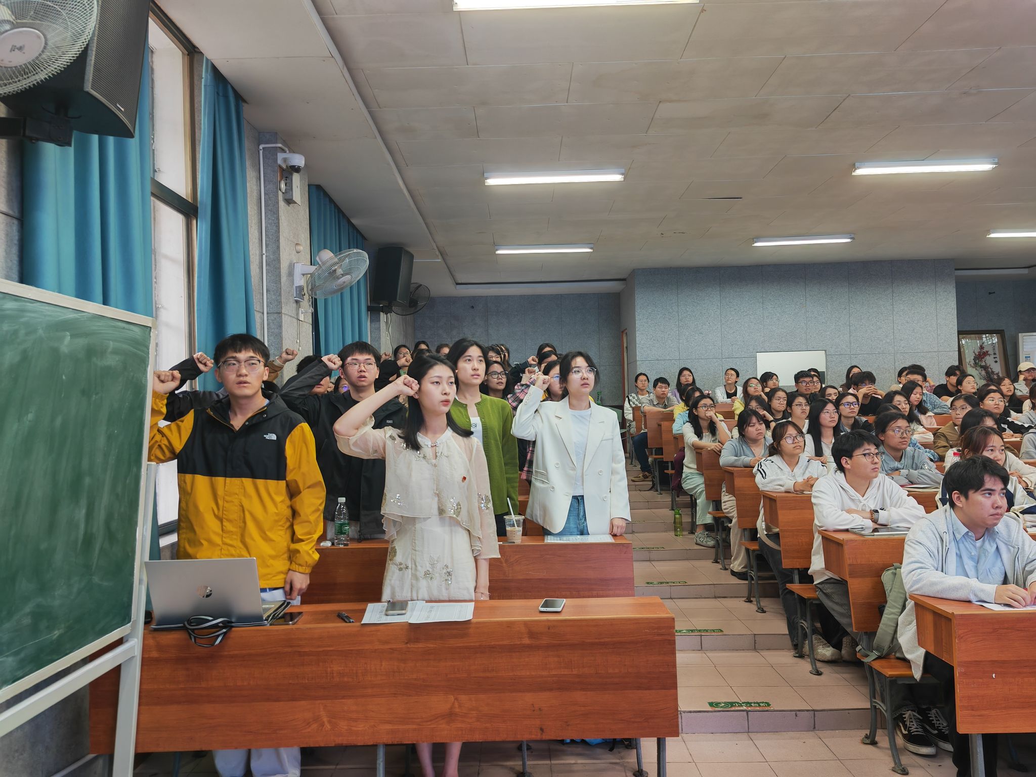 4月24日中午,大象影视大全在线观看分党校第78期入党积极分子培训班开班仪式暨新发展党员集体宣誓大会在文渊楼217教室举行。学院党委副书记刘宓蜜、学院专职组织员夏云飞参加,仪式由学工办主任周灿老师主持。大象影视大全在线观看全体新发展预备党员及第78期入党积极分子培训班全体学员参加开班仪式。