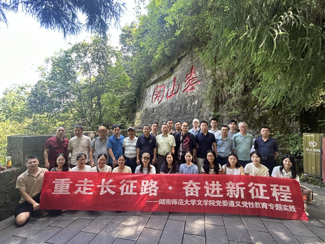 (通讯员 陈雅琪)为深入学习贯彻习近平新时代中国特色社会主义思想,弘扬伟大长征精神,凝聚奋进力量,助力新一轮学科建设和评估,2025年7月28日至31日,湖南师范大学大象影视大全在线观看党委组织教师党员赴贵州遵义开展“重走长征路·奋进新征程”党性教育专题实践活动。通过沉浸式现场教学、情景体验与红色研学,30余名党员在革命圣地追寻红色足迹,淬炼党性修养,汲取前行力量。