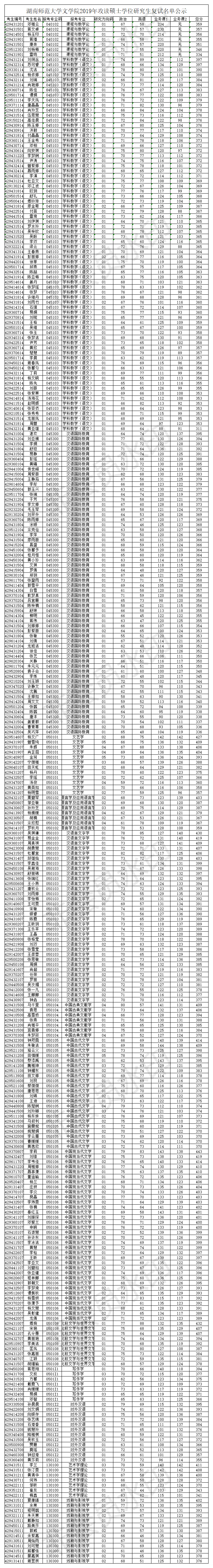 湖南师范大学大象影视大全在线观看2019年攻读硕士学位研究生复试名单公示