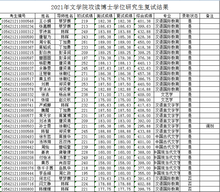 2021年大象影视大全在线观看攻读博士学位研究生复试结果