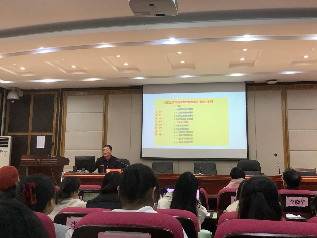 讲座围绕准定语研究问题的缘起、准定语现象研究存在的问题、准定语的分类、准定语现象中的诸多不对称、准定语操作与双音词的离析、单一新信息原则与准定语操作等六个方面进行讲解。