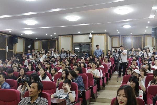 (通讯员 吴迪 刘幸龙 周洁)5月4日上午,我院216教室座无虚席,中央戏剧学院导演系博士张慧,青年演员任素汐、青年演员董博,以及制作人王峰做客我院,与我院戏剧影视文学专业同学及我校戏剧爱好者进行沟通交流。此次活动由15级戏剧影视文学专业安敏主持,我院副院长岳凯华、我院戏剧影视文学专业系主任胡海义、专业讲师高欢欢、我校新闻与传播学院副教授刘彬、讲师石力夫参与了本次见面会。