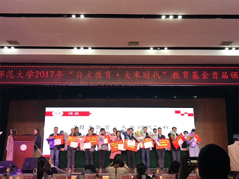 (通讯员 陈胜冲 李旷怡)11月28日晚,我校“自主教育,大米时代”教育基金首届颁奖典礼在励德楼学生活动中心举行。广州全赢自主教育股份有限公司总经理邓放国,我校校长蒋洪新、副校长黎大志、副校长周俊武等领导嘉宾出席。