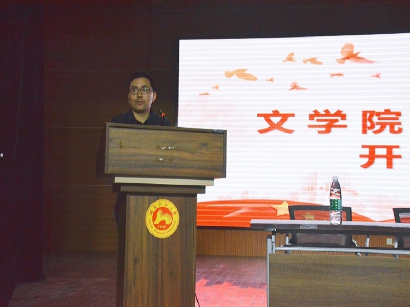 本科生老生代表2015级学生李坤霖发言,他用自己的亲身经历激励新生,要勇于抓住机遇,敢于行动,善于选择规划,同时还要亲近师长、结交同学,砥砺相长,做一个优秀文院学子。