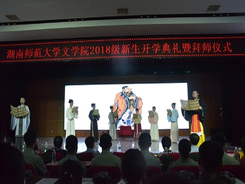 典礼最后,拜师仪式开始。此次拜师礼邀请我院教授何林军、李红叶作为受礼教师。在主持拜师礼的学生指导下,18级新生全体起立向老师行礼,共同诵读《大学》节选篇章。作为大象影视大全在线观看的开学传统,拜师礼意在向新生传递“尊师重道”的理念。
