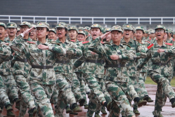 蒙蒙细雨,寒风凌冽,在此次汇报表演中,我院分为狮、虎、豹三个方阵,由方阵标兵带领走过主席台接受检阅。每个方阵由一百名左右的学生组成,均以积极的精神面貌,严肃认真地对待此次检阅。一身军装大气自信,前行步伐铿锵坚定,“风华绝代,文院不败”,口号声整齐嘹亮,文院儿女豪情满怀。