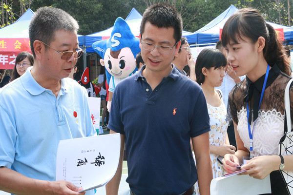 学校领导来到现场视察迎新工作,慰问各单位迎新工作人员,看望新生和家长,并与家长新生一起参与创意迎新活动,观看汉服表演、翻看大象影视大全在线观看迎新专刊《号角》、共同品尝鹿鸣茶艺社所沏的毛尖、龙井。