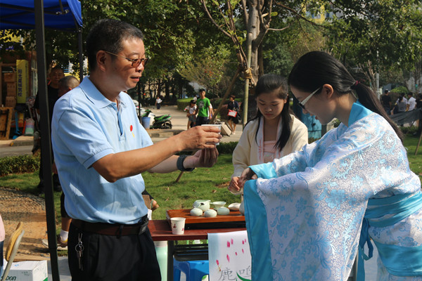 此次迎新工作以“文化与创意相撞”为主题,设置了学院门口全家福拍摄、横幅签名、鹿鸣茶艺社迎新茶、汉韵学社汉服迎新、“神秘之约”抽奖送书以及读书漂流六个创意迎新活动。此外,此次迎新还采用扫二维码的形式,完成迎新工作中的学生自助报道。
