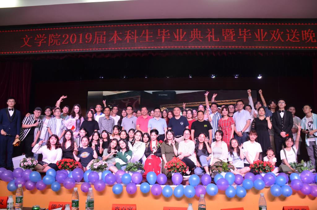 (记者 刘灿 杨树菲娅 陈慧岚)6月17日晚,我院2019届本科生毕业典礼暨毕业晚会在励德楼学生活动中心举行。我院党委书记李伶俐、院长郑贤章、党委副书记熊剑峰、副院长肖百容、副院长岳凯华、副院长彭万福、戏剧影视文学专业系主任胡海义、戏剧影视文学专业老师高欢欢及学工办全体老师到场参加。